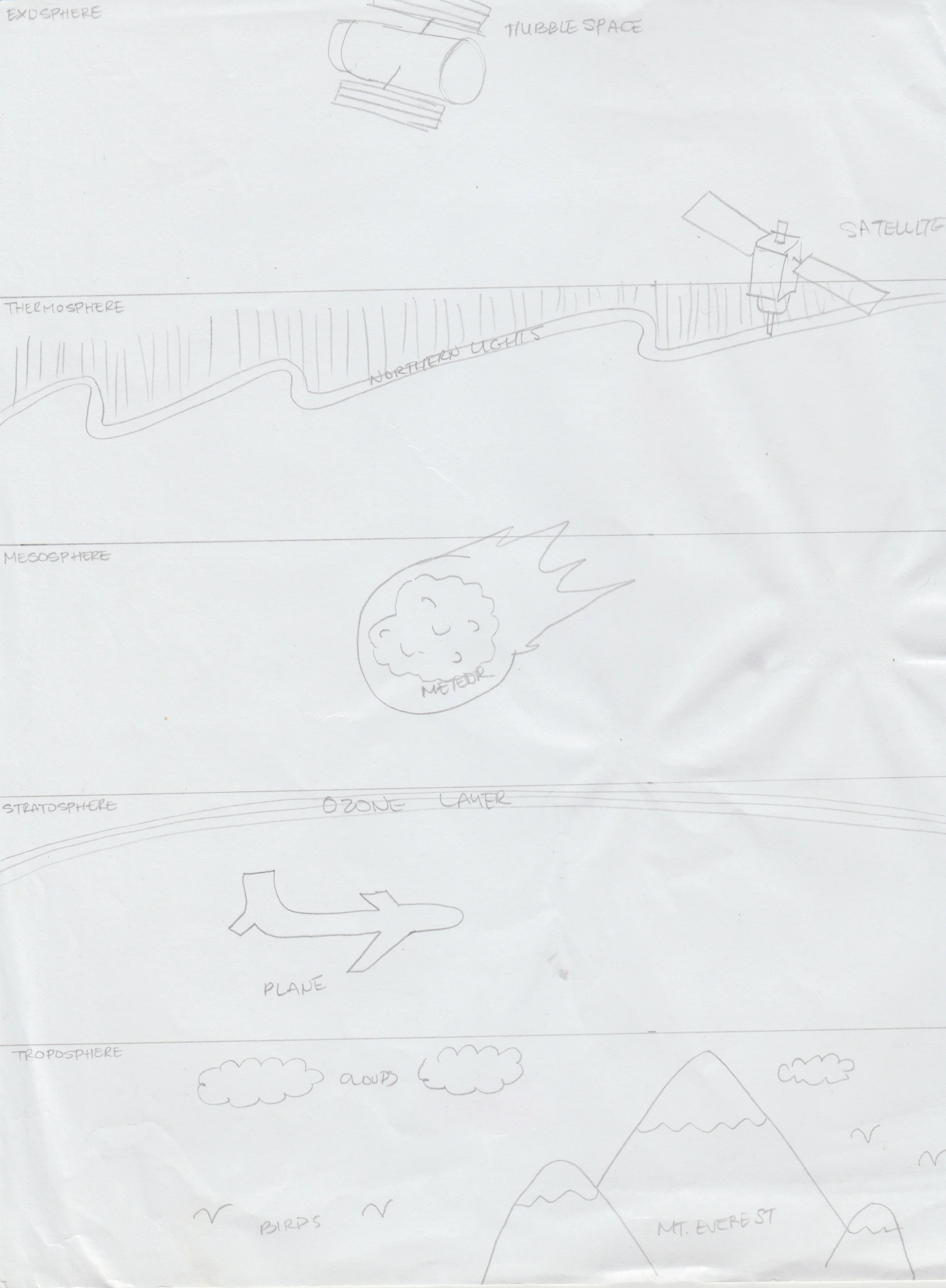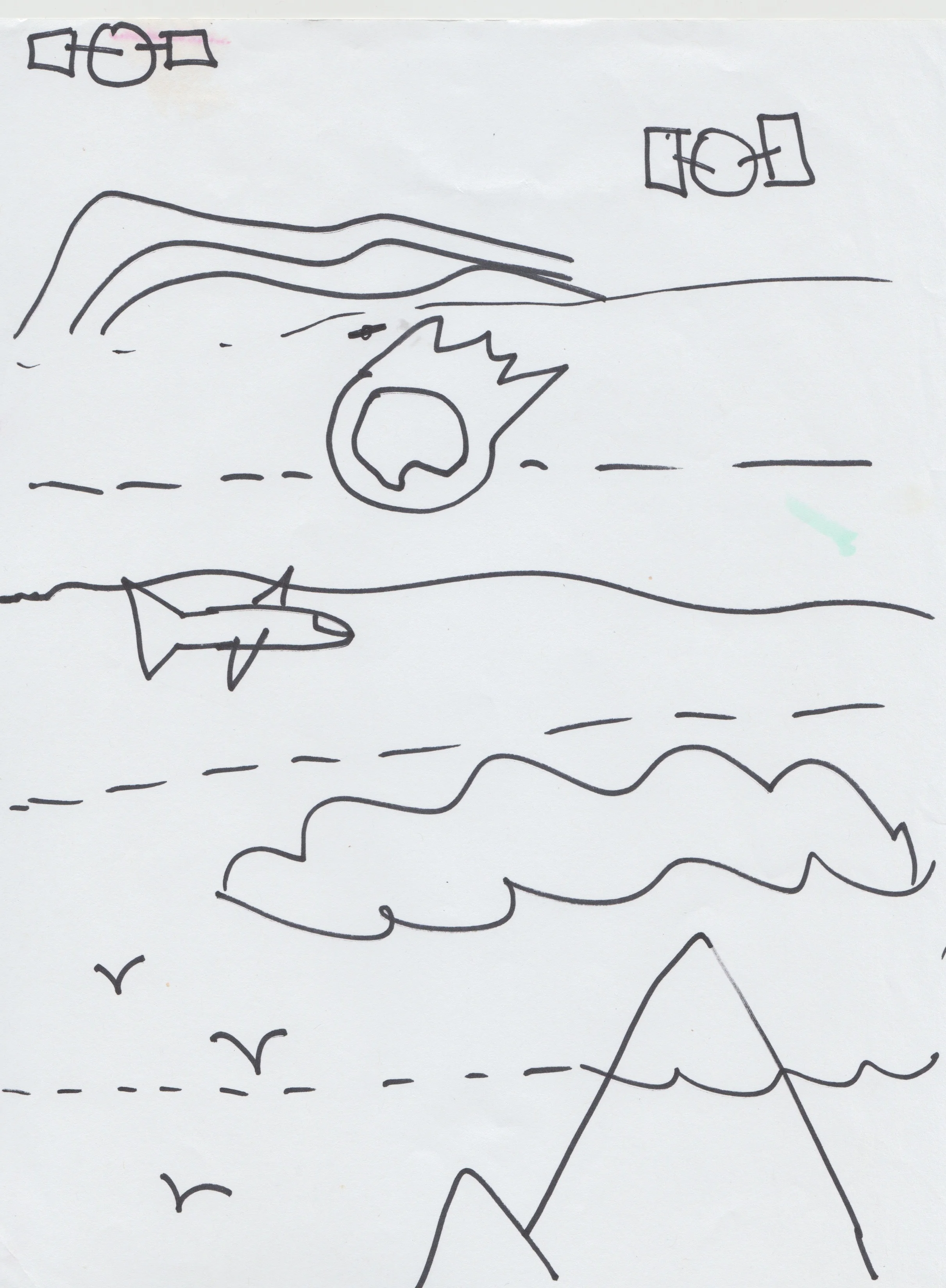 Illustrations of Orphey, Rocket, Asteroid Layer, and Scale by Kristy