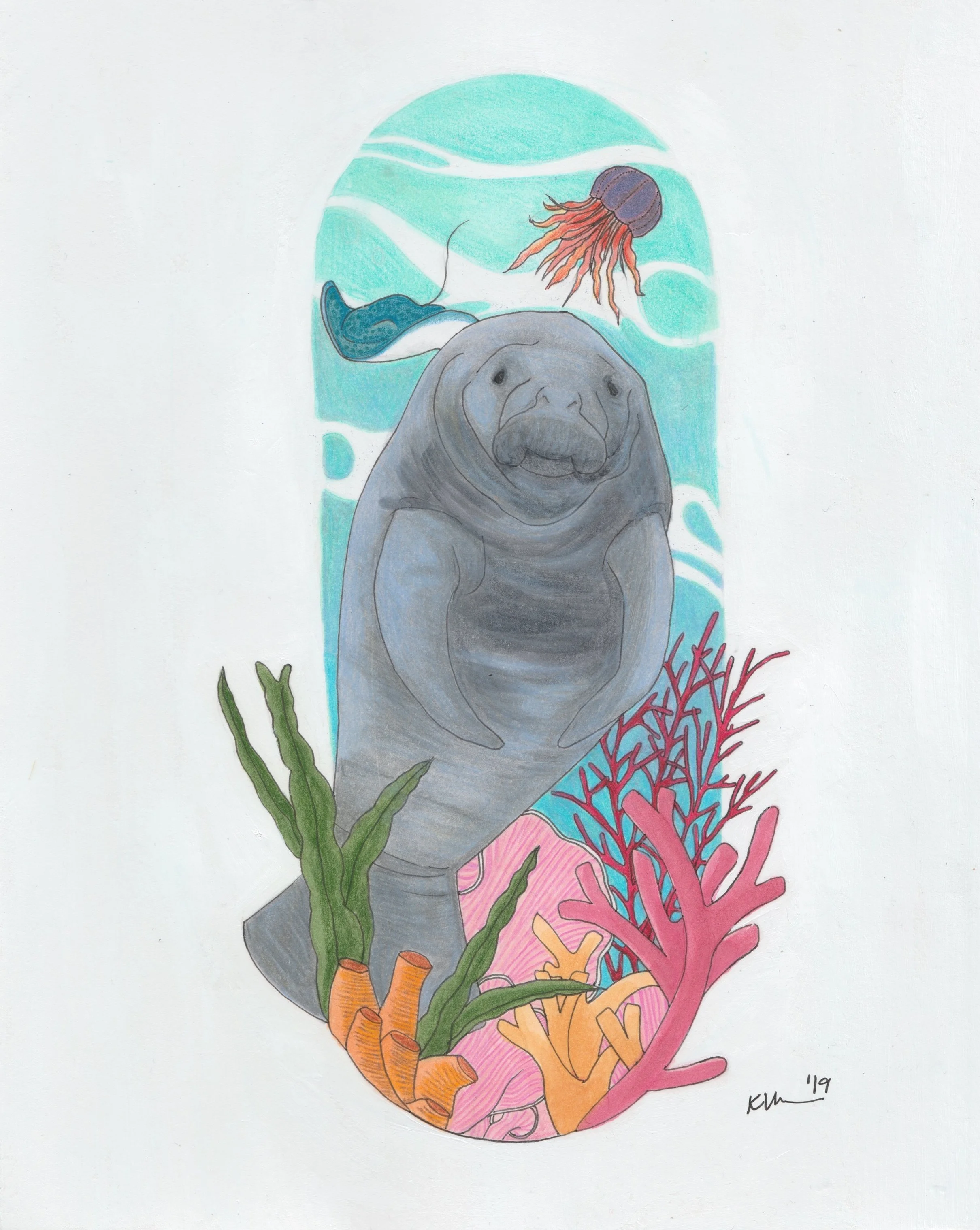 Under the Sea, marker, color pencil and acrylic on bristol paper, 8 x 10 inches (2019)