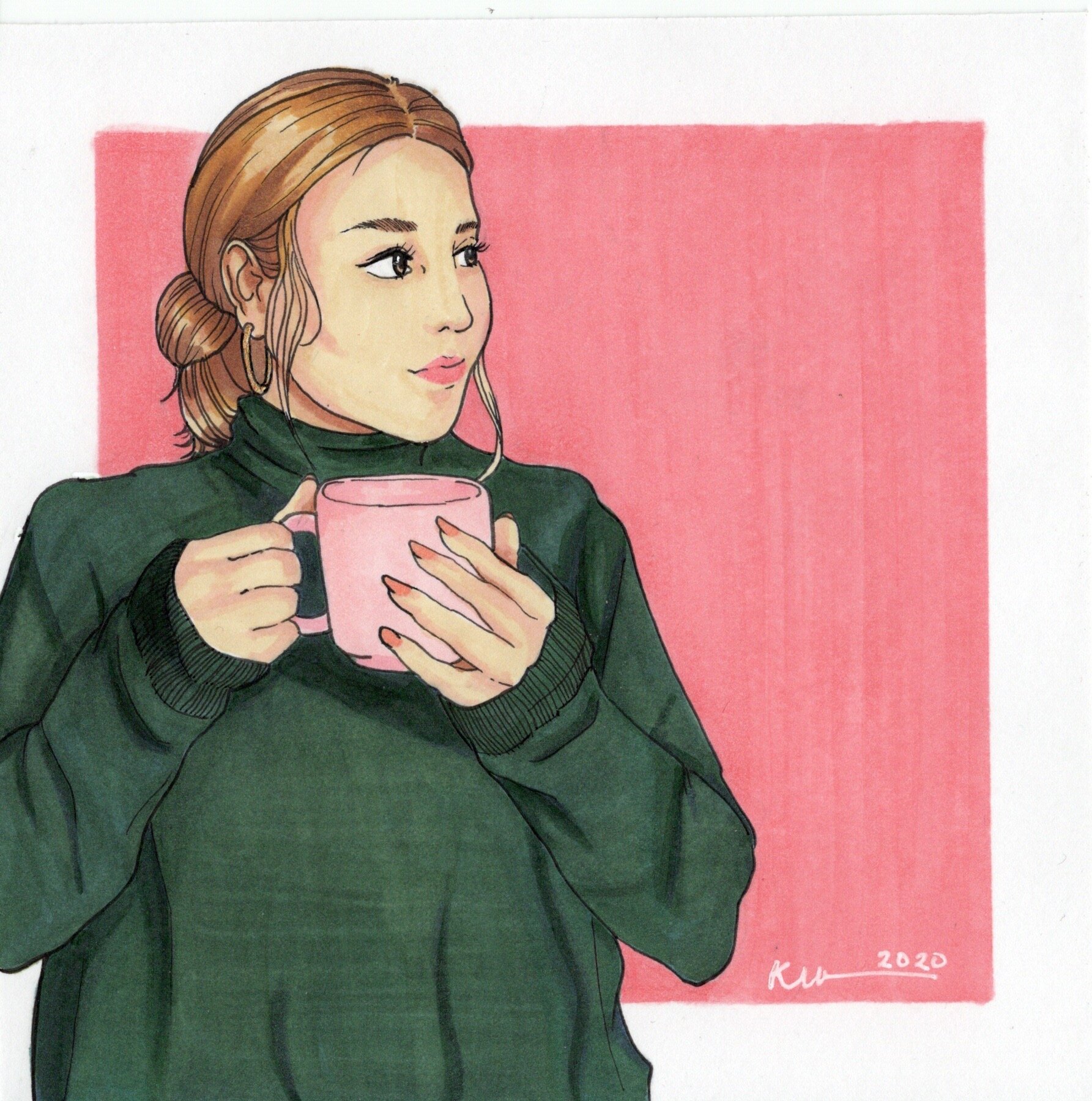 Coffee of the Day, marker, ink and gold acrylic on bristol paper, 6 x 6 (2020)