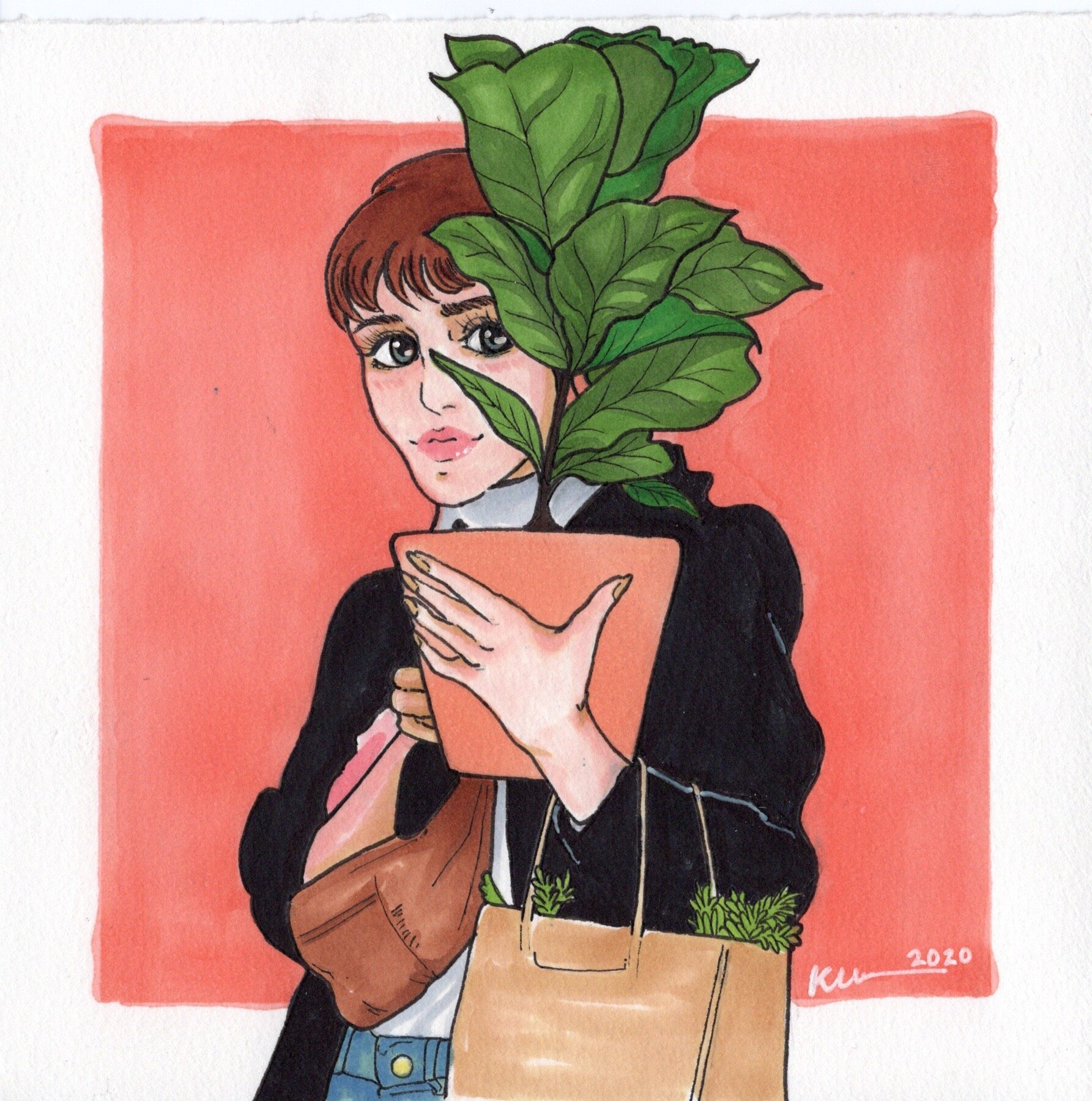 Plant Baby, marker and ink on Canson edition paper, 6 x 6 (2020)