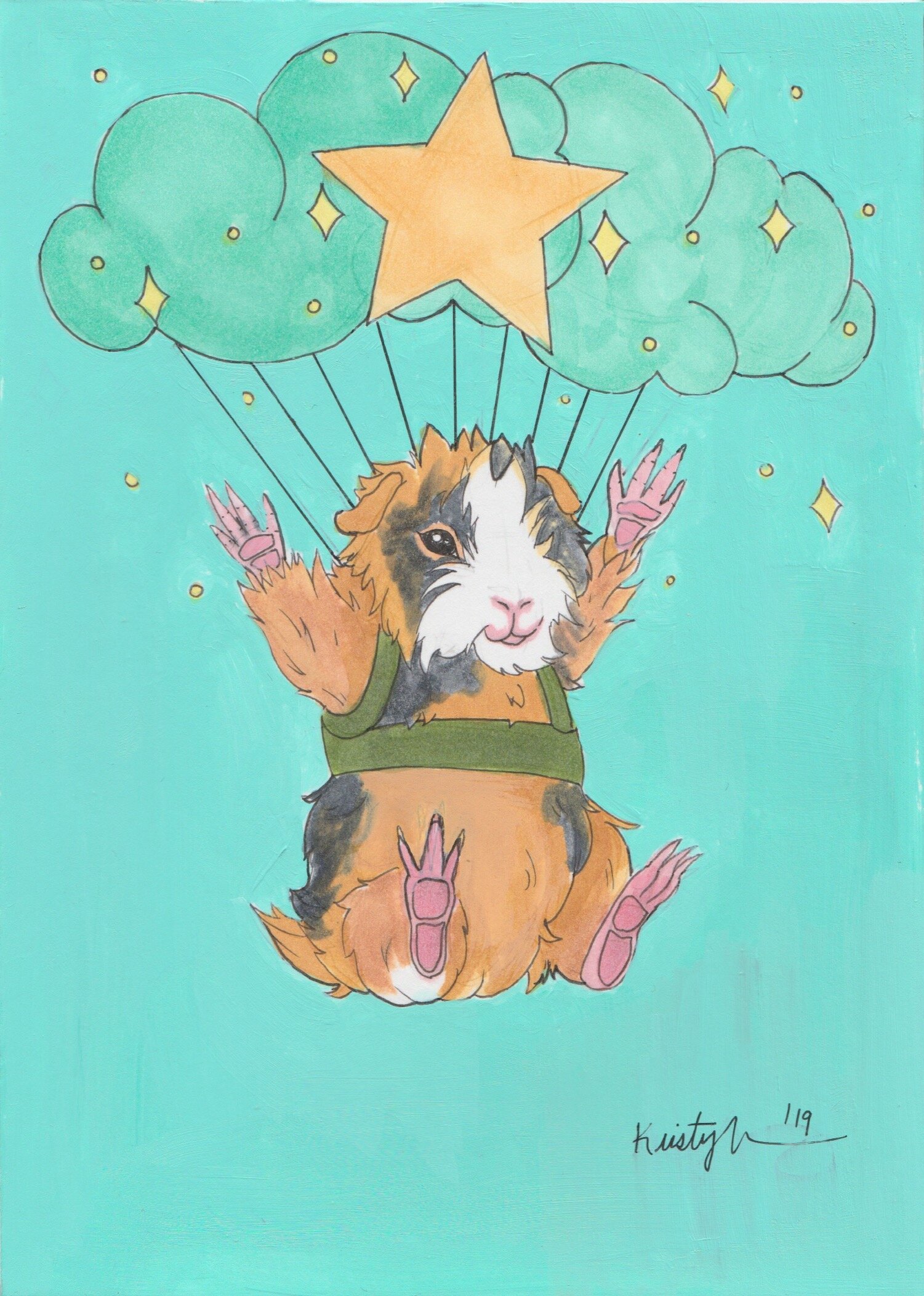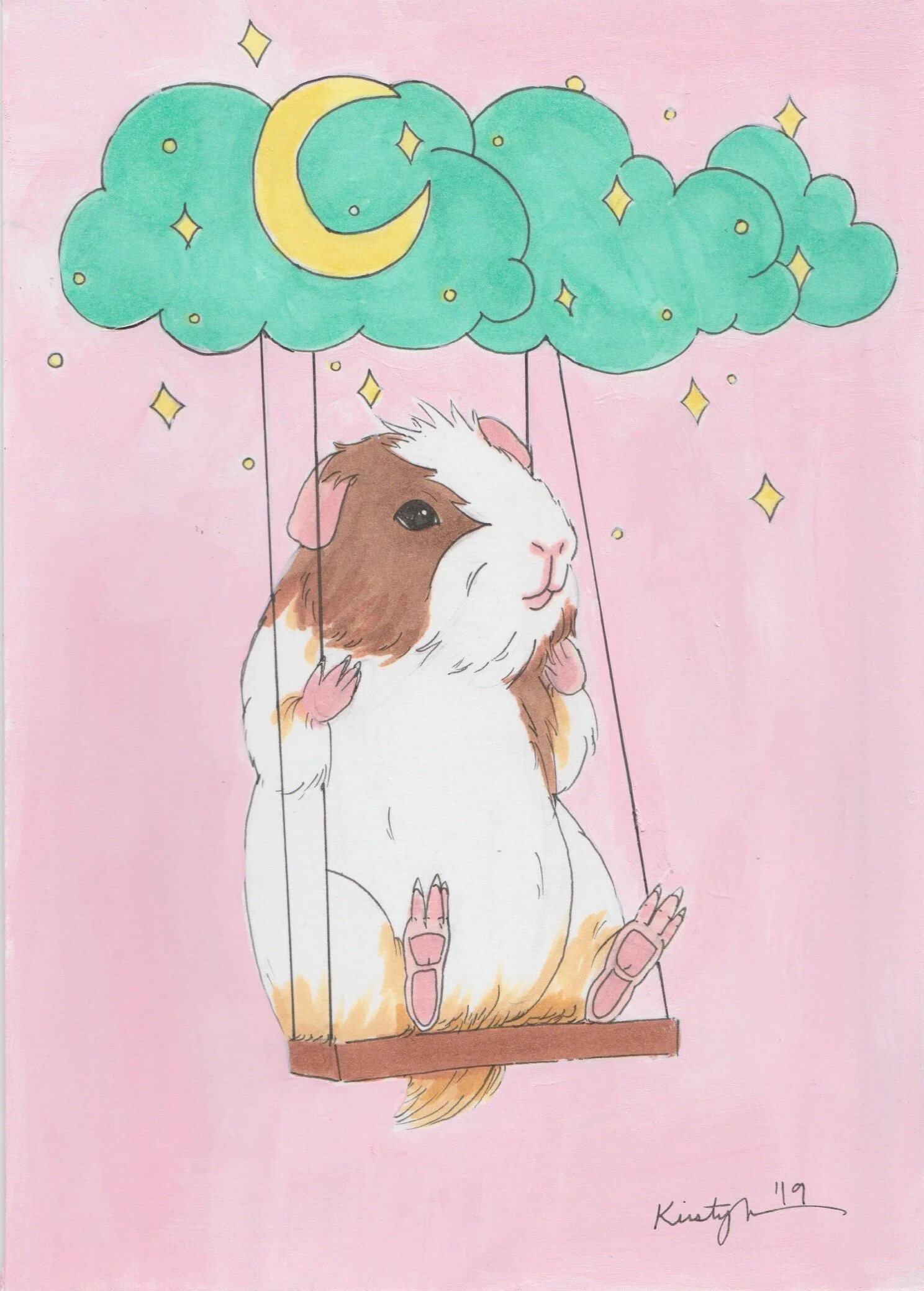 Swinging in the Clouds Guillermo, marker, ink and acrylic paint on bristol paper, 4 x 6 (2019)